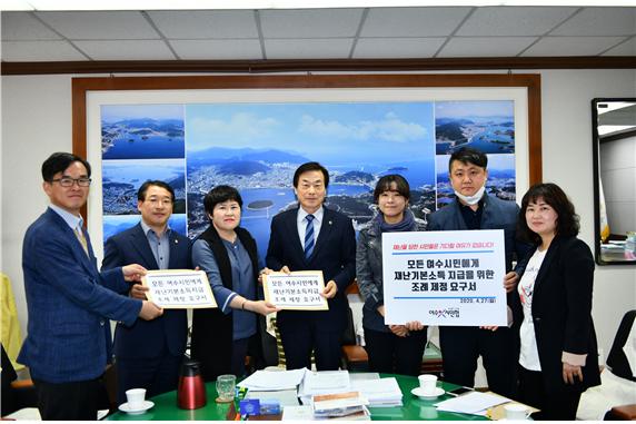 요구서에는 여수시의회가 여수시와 긴밀한 협조로 가능한 예산을 총 동원하여 자격심사나 선별과정을 거치지 않고 모든 시민에게 재난기본소득을 지급하는 조례를 신속히 제정하기를 바라는 내용이 담겼다.