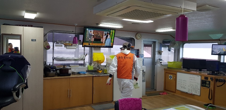 무엇보다 중요한 곳은 전염성이 빠른 선내다. 배를 책임지는 선장이 청소하고 있지만 이들은 추가점검차 승객들이 모두 빠져나간 배 안에서 의자와 문틈 구석구석을 소독했다.