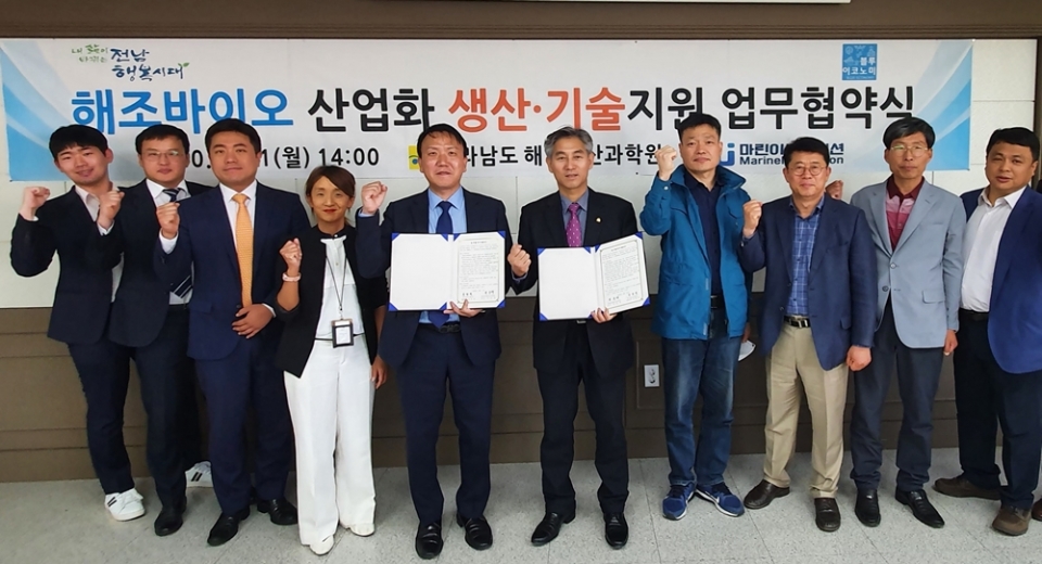 11일 전남해양수산과학원과 ㈜마린이노베이션은 ‘해조바이오 산업화’를 위한 업무협약을 체결, 고부가가치 창출로 어업인 소득증대에 나섰다.