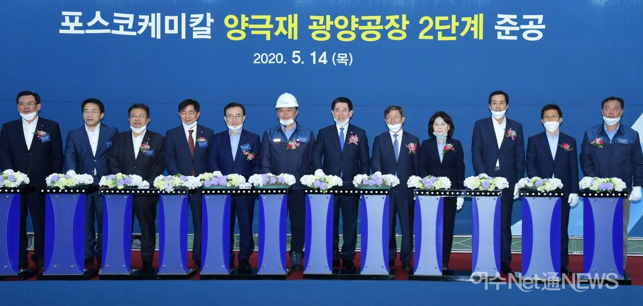 이날 준공식에는 김영록 도지사와 민경준 포스코케미칼 사장과 오규석 포스코그룹 신성장 부문장, 김명환 LG화학 대표, 김갑섭 광양만권경제자유구역청장, 권오봉 여수시장, 정현복 광양시장 등 90여명이 참석했다.