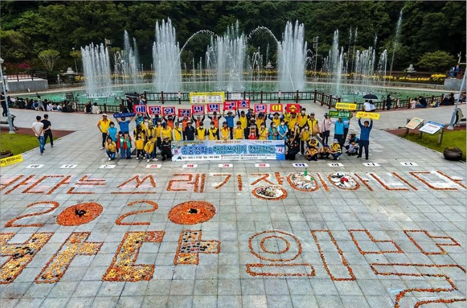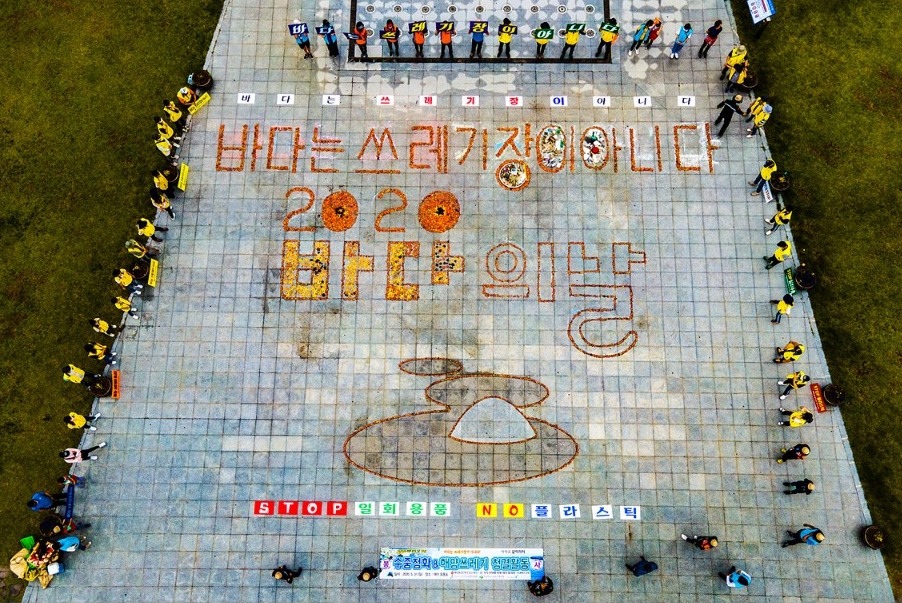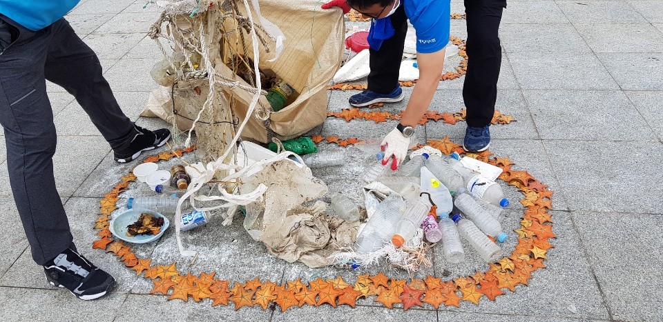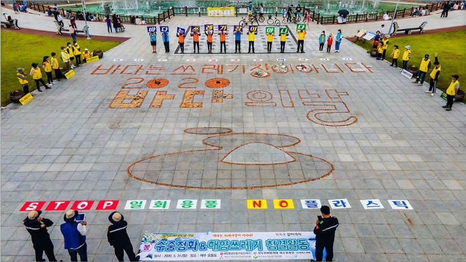 수중정화활동이 끝나고 불가사리와 해양쓰레기를 이용해 바다의 날을 알리고 해양환경의 심각성을 표현하고자 대형글씨 '2020 바다의 날'과 '바다는 쓰레기장이 아니다' 를 제작하는 퍼포먼스를 열어 오동도를 찾은 시민이나 관광객들에게 볼거리를 제공하며 해양오염 심각성과 바다사랑 실천을 홍보하였다.