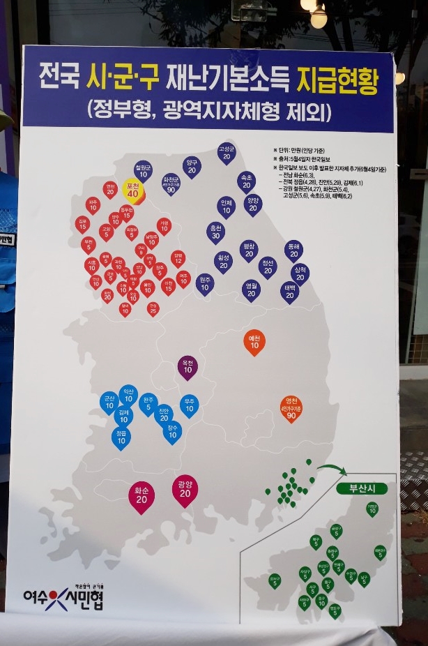 여수시민협은 4월 말부터 꾸준히 재난기본소득을 요구하는 논평을 발표해오고 있다. 이들은 오는 13일 여수시의 긴급재난지원금 지급 찬반여부를 묻는 길거리투표를 한 번 더 실시하고 그 결과를 합산해 여수시에 전달할 예정이다.