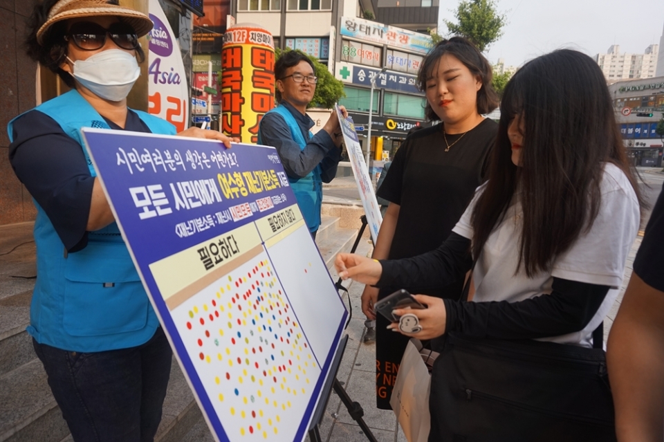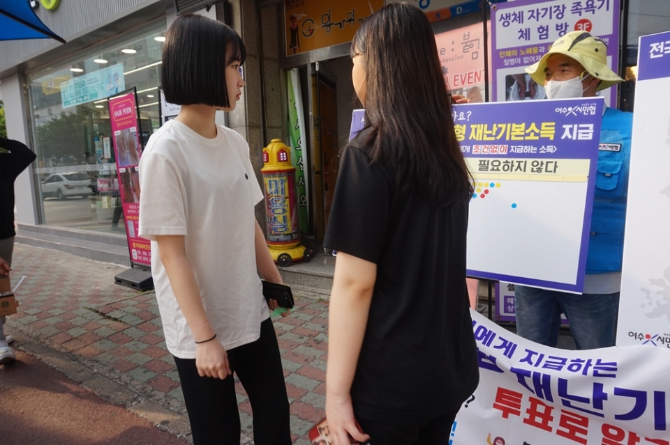 이에 시민단체는 길거리투표로 재난기본소득 지급에 대한 시민들의 생각을 듣기 위해 직접 거리로 나섰다. 투표는 신기동 부영3단지와 쌍봉사거리, 여서동 송원백화점 앞, 교동오거리 총 네 곳에서 이뤄졌다.