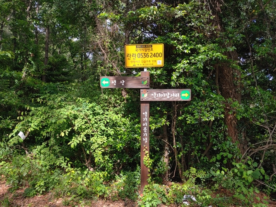 화정면 낭도리 상산 등산로와 낭도 둘레길에 국가지점번호판 14점이 설치됐다.