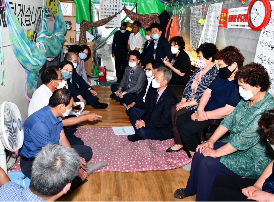 전창곤 의장은 “상인 여러분들이 오랜 기간 농성을 하고 계셔서 건강에 대한 우려가 크다”며 “사회적 약자의 입장을 대변하는 것이 시의회의 역할인 만큼 분쟁이 해결될 수 있도록 의회 차원의 노력을 하겠다”고 밝혔다.