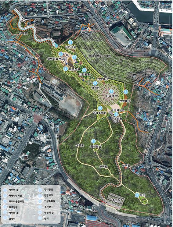 2022년 6월 완공을 목표로 107억원을 들여 4만 2,480㎡에 명상의 숲 등 공원을 조성하고, 남산북1길에서 공원으로 진입할 수 있는 291m의 도로 개설과, 1,822m의 산책로 16곳을 개설할 계획이다. 잔디광장과 전망데크, 야외미술전시장과 암석원 등도 들어선다.