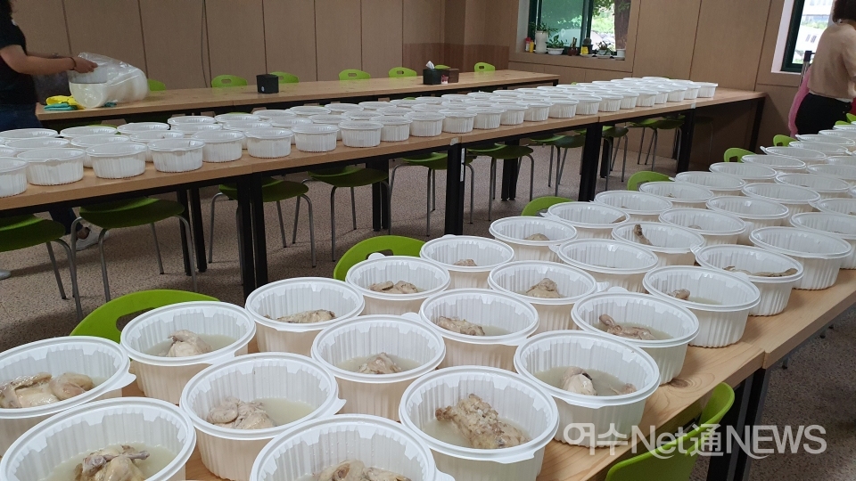 행사는 코로나19로 인한 여수시 재휴관 지침에 따라 본 복지관 경로식당이 아닌 대상자 130명 각 가정에서 진행되었으며 (유)조은골재와 복지관 임직원들은 맛있고 영양가 높은 삼계탕과 식사 후 드실 디저트(과일)를 준비하여 직접 전달하였다.