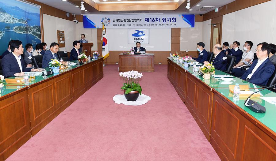 남해안남중권발전협의회(회장 권오봉) 제16차 정기회의가 21일 여수시청 상황실에서 개최됐다.