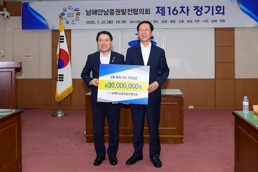 남해안남중권발전협의회는 지난 10일 화재가 발생한 고흥 윤호21병원에 3천만원의 성금을 지원하기로 약속했다.