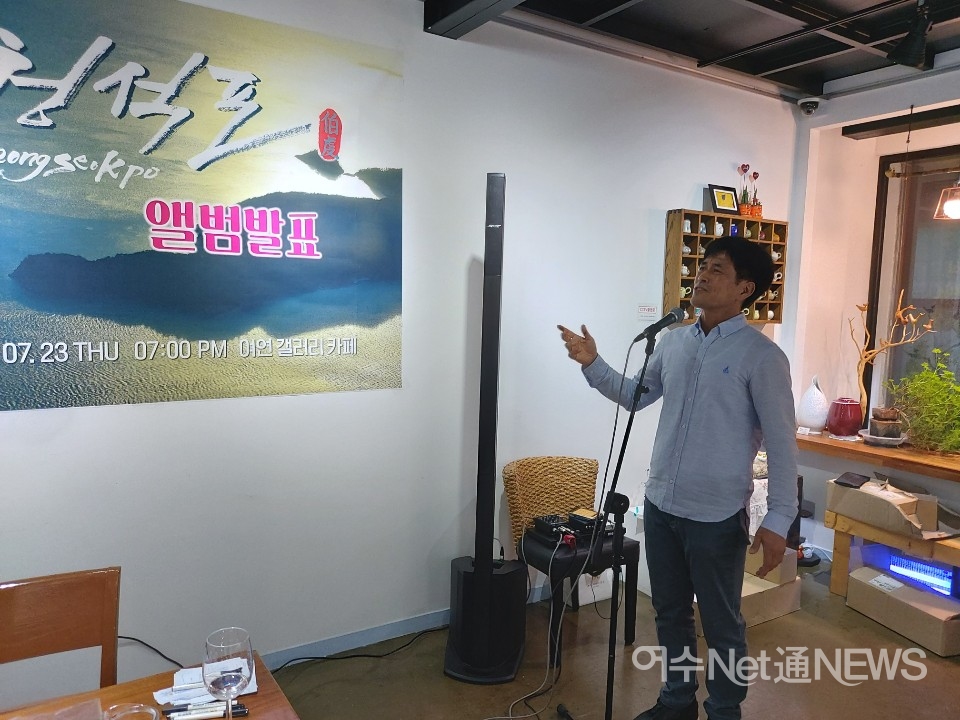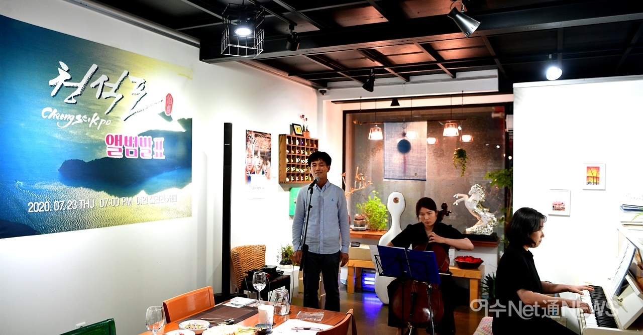 여수시 화정면 개도의 '청석포'를 노래한 싱글 앨범 발표회가 23일 저녁 여수미술관 1층 여연갤러리 카페에서 조촐하게 열렸다.