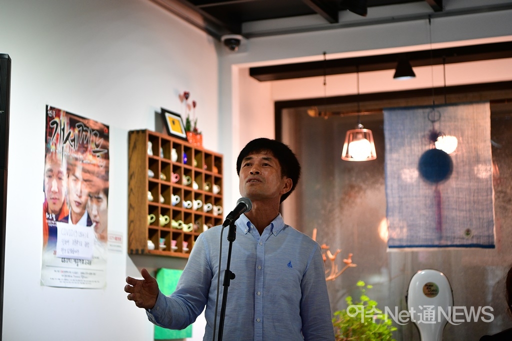 지난 23일(금) 저녁 7시, 여수 도원로에 소재한 여수미술관 1층 여연갤러리 카페에서 '청석포 앨범발표회'가 열렸다. 여수상공회의소가 후원한 발표회장에는 15명의 인원이 참석했다. 주최측에서는 "코로나 때문에 꼭 필요한 최소인원만 초청했다"라고 밝혔다.