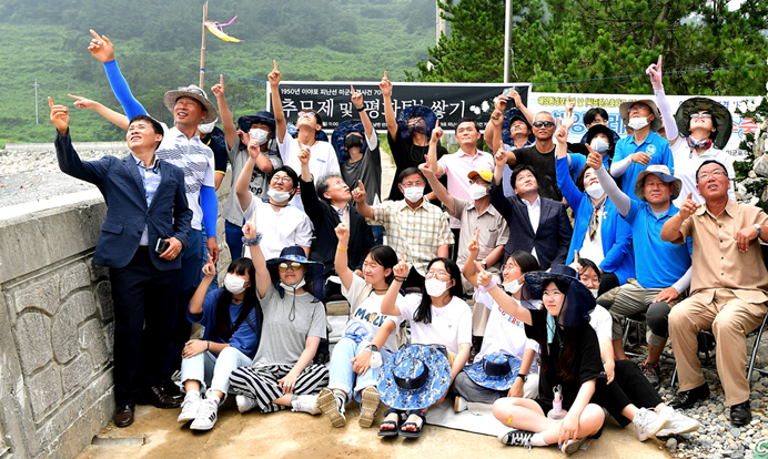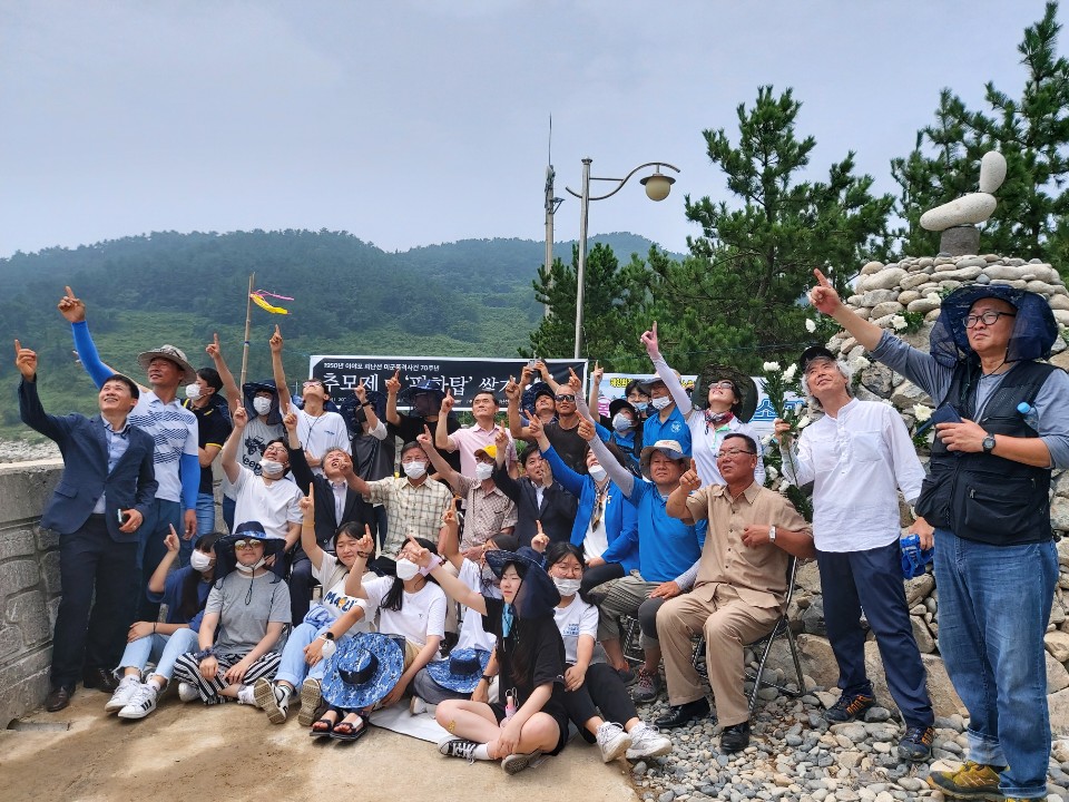추모제 마무리 행사로 평화탑에 헌화까지 마치고 단체 기념촬영하는 순간 누군가 외쳤다.