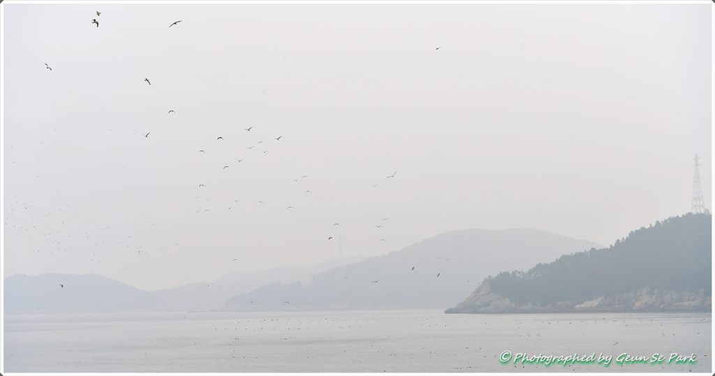 촬영을 멈추고 우리는 바다위의 새떼가 나는 하늘을 쳐다보고 환호했다. 아! 갈매기 수백 마리다. 아마 150마리일까?