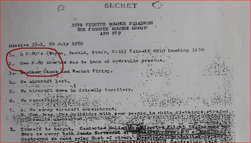 이제 무엇을 할 것인가가 남았습니다. 만약 해양환경인명구조단 여수구조대 대원들이 이야포 수중에서 발견한 물체를 인양하여 피난선 일부인 것이 전문가의 감정을 거쳐 확인 된다면, 학자들이 참여하는 진상조사위원회가 공식적으로 발족되어야 합니다. 위원회는 미국국립기록관리청(NARA)에 보관되어 있을 1950년 8월 3일자 미공군 작전보고서를 확인하게 될 것입니다. 이것이 확보되면 이야포 학살을 저지를 미군기 기종도 명확히 밝혀지게 될 것입니다. 그러면 생존자와 목격자 피난선과 더불어 학살의 실체가 오롯이 밝혀지게 될 것입니다. 아래 사진은 폭격임무를 맡은 기종이 기록된 1950년 7월 20일 작전보고서입니다.