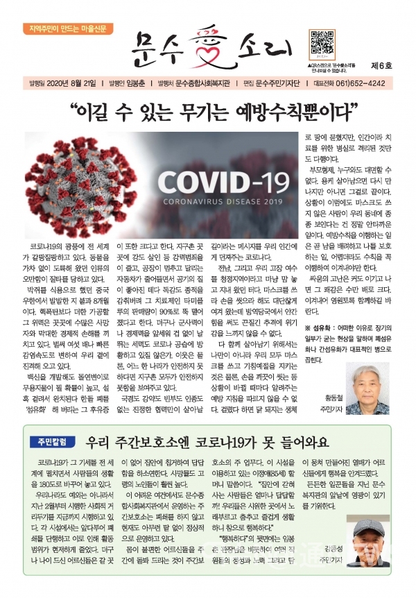 문수종합사회복지관(관장 임봉춘)에서는 21일 지역주민이 만드는 마을신문 ‘문수愛소리’ 제6호를 발간했다.