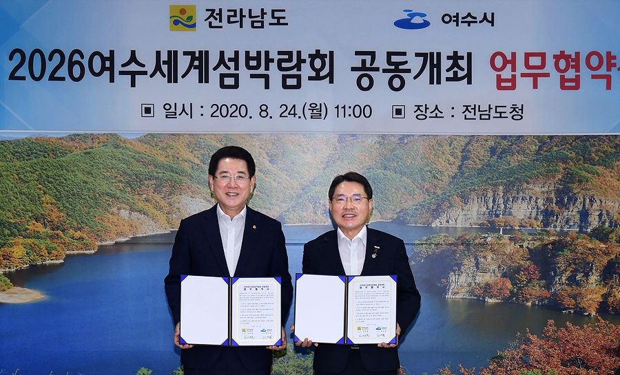 24일 여수시는 전남도와 도청 VIP실에서 2026여수세계섬박람회의 성공적 추진 을 위한 공동개최 업무협약을 체결했다.