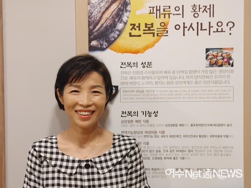 7년째 전복요리와 유기농 음식점을 이어온 음식전문가 주미경 대표의 모습