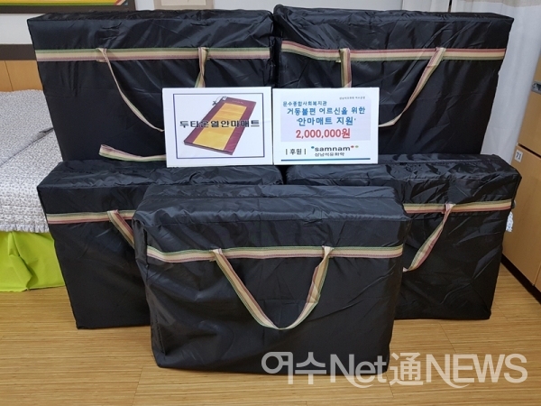 삼남석유화학 여수공장 이오식공장장은 코로나19로 힘들고 어려운 상황에 어르신들의 건강한 노후생활의 일환으로 안마매트 지원통한 건강한 웃음을 선물해 주셨다.