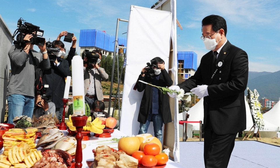당초 500여명이 참석할 예정이었으나 질병에 취약한 고령 유족 등에 대한 코로나19 감염을 예방하기 위해 최소 인원만 참석해 진행됐다.