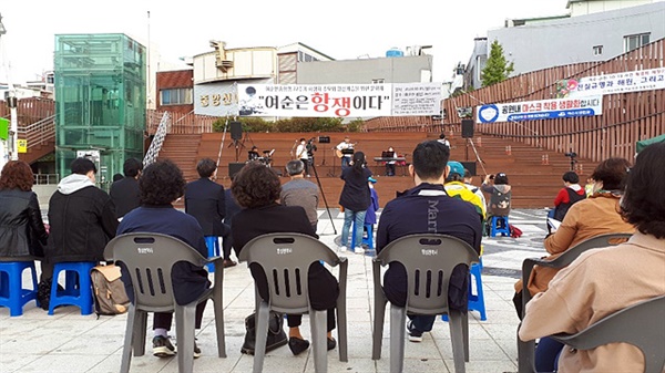 여순사건 72주기를 하루 앞둔 18일(일) 오후 4시, 이순신 광장에서는 여순민중항쟁 72주기 희생자 추모와 정신계승을 위한 문화제가 열렸다. 현장에는 희생자 유족과 시민 50여 명이 참석했다.