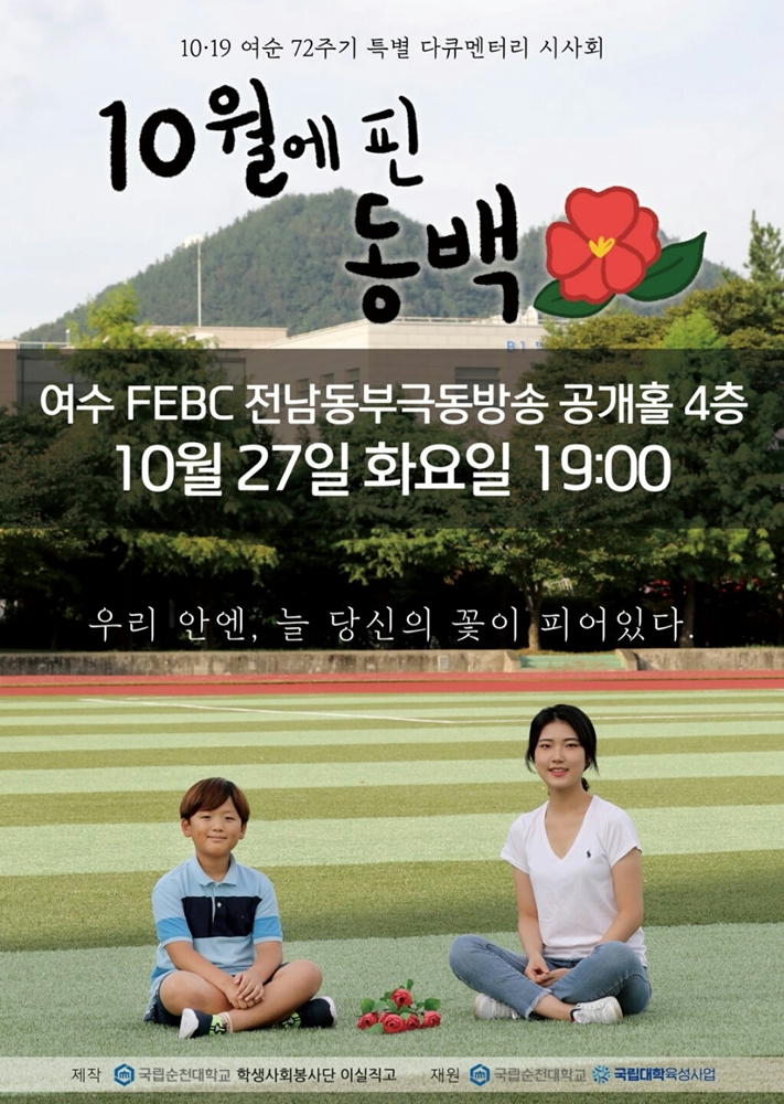 순천대 학생들이 제작한 여순 72주기 특별 다큐멘터리 ‘10월에 핀 동백’ 시사회가 순천에 이어 여수에서 열린다.