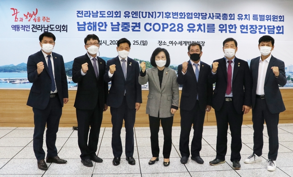 강문성 특별위원장은 “남해안 남중권에 COP28을 유치하는 것은 전남과 경남의 동서화합을 통해 국토 균형발전의 새로운 비전을 제시하고 대한민국을 기후선진국 반열에 올라서게 함으로써 K방역과 같이 전 세계에 국격을 드높이는 일”이라며 “경남도의회와 공동으로 정부, 국회 등을 대상으로 유치활동을 적극 전개하는 등 COP28 유치를 위해 최선을 다하겠다”고 밝혔다.