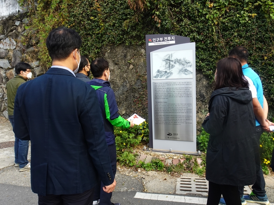 답사팀은 잉구부전투가 벌어진 연등동도 방문했다. ‘왼쪽으로 구부러진 도로’를 뜻하는 잉구부에서 벌어진 전투는 시민들이 가장 큰 승리를 전투다. 주 박사는 이곳을 두고 ‘당시 유일하게 북상할 수 있었던 도로’라고 설명했다.