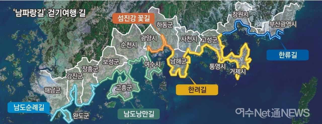 ‘섬진강 꽃길’은 섬진강과 꽃 경관이 아름다운 하동부터 광양까지 구간이며, ‘한류길’과 ‘한려길’은 부산, 남해 등을 포함하고 있다.