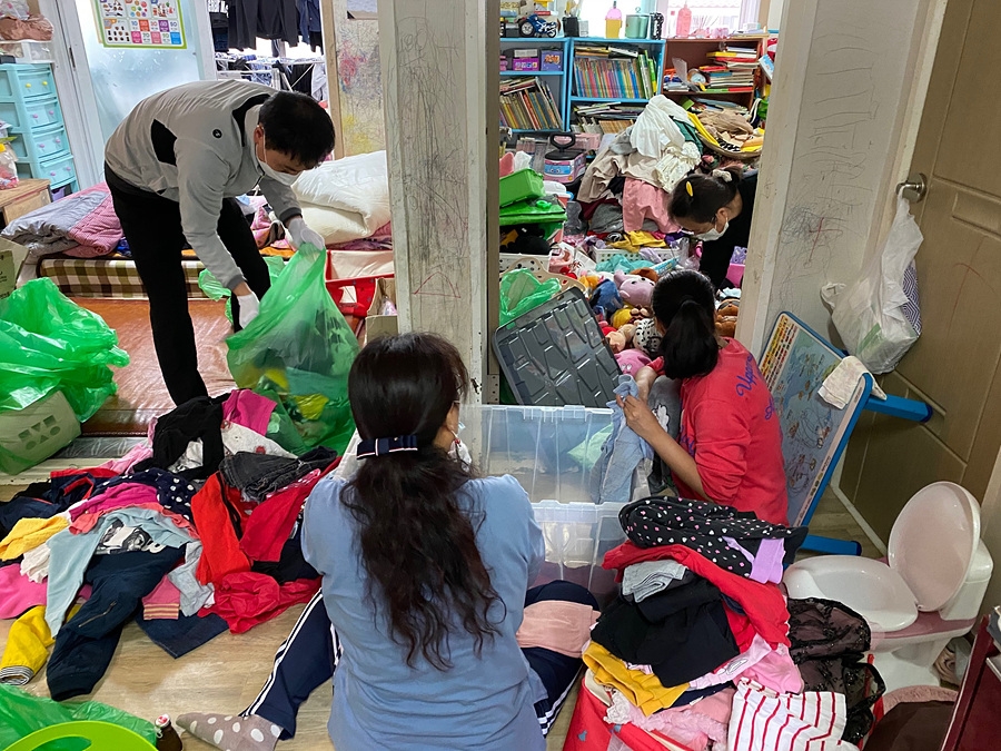 봉사단 5명과 공무원이 참여해 아동들의 의류 및 장난감을 정리했고 아이들 스스로 정리정돈 습관을 기를 수 있도록 했다. 또한 동 주민센터 맞춤형복지팀을 통해 취약계층 방문 세탁 서비스를 연계함으로써 이불과 의류 세탁이 적시에 이루어지도록 했다.