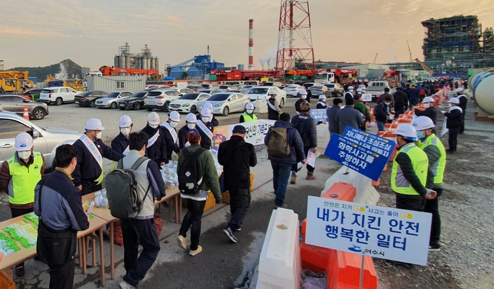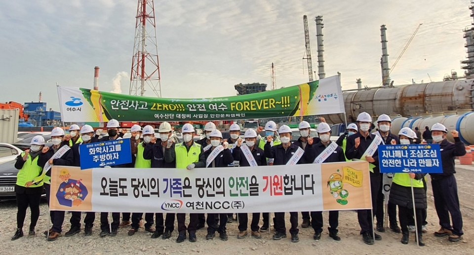 여천NCC(주) 2공장이 정기 대보수 기간을 맞아 6일 공장 정문에서 임직원 및 협력업체 직원을 대상으로 무재해 안전 캠페인을 실시했다.