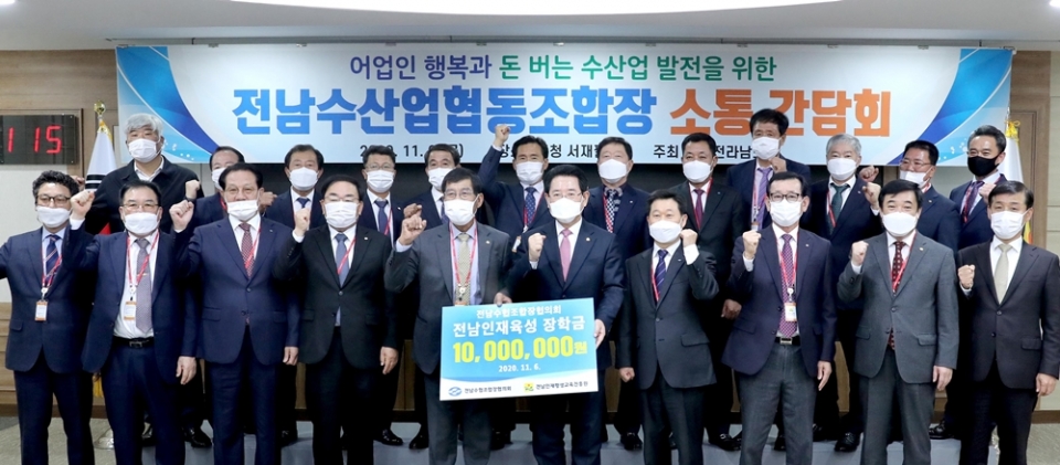 수협조합장협의회는 이날 전남 수산 인재양성을 위해 사용해 달라며 전남도에 장학금 1천만원을 전달하기도 했다.