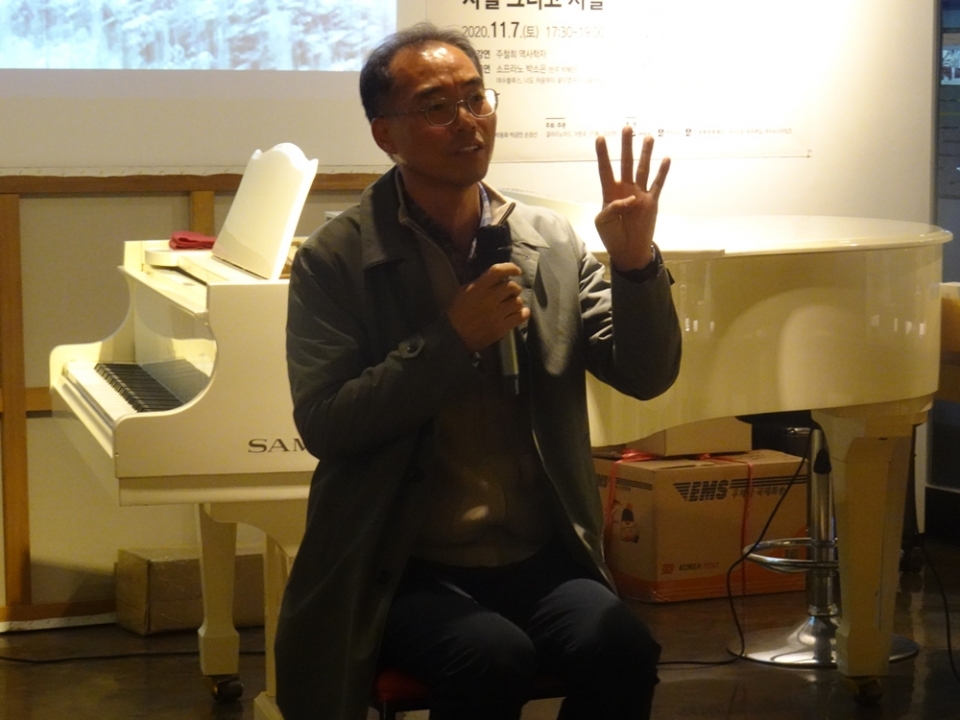코로나19로 사전 예약한 25명의 방문객들만 토크콘서트에 참여했다. 토크콘서트는 주철희 역사학자와 제주 김동현 문학평론가의 대담으로 진행될 예정이었으나 이날 김동현 평론가가 참석하지 못해 주철희 역사학자의 강연으로 대체되었다.
