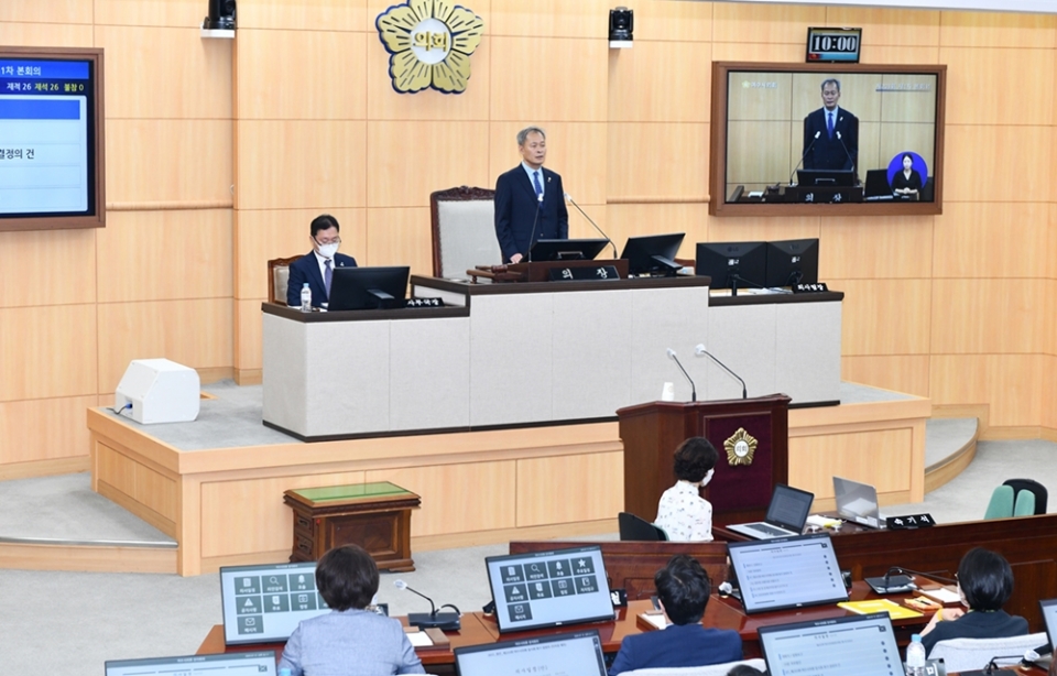 전창곤 의장은 이날 제206회 정례회 개회사에서 “시정부가 청사별관 증축, 미평공원 도로개설 등 현안업무를 불공정하게 처리하고 있다는 우려의 목소리가 곳곳에서 나오고 있다”며 이같이 밝혔다.