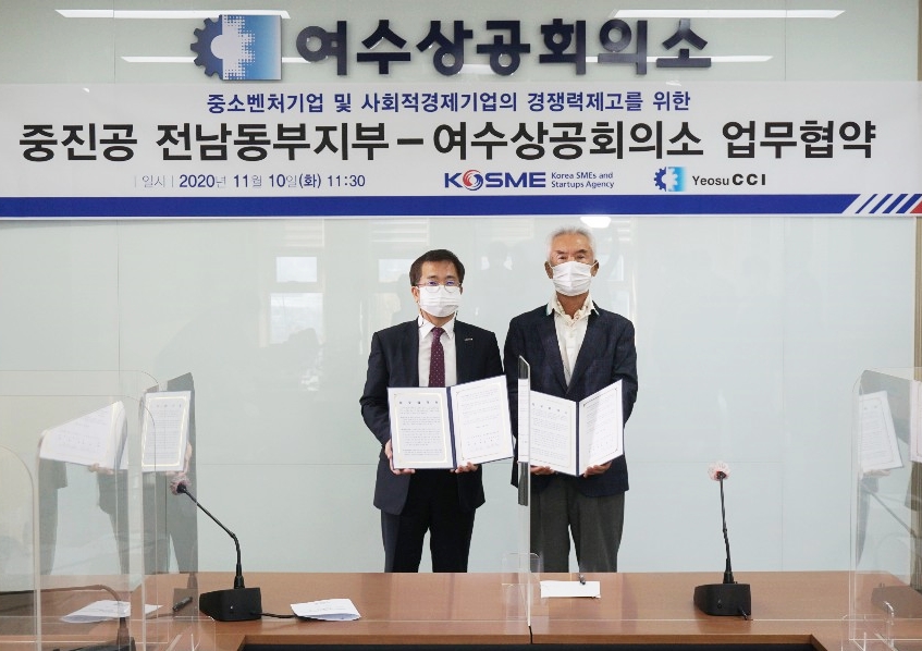 이날 협약식에는 박용하 여수상공회의소 회장, 김권호 중진공 전남동부지부장 등 관계자 10여 명이 참석했다.