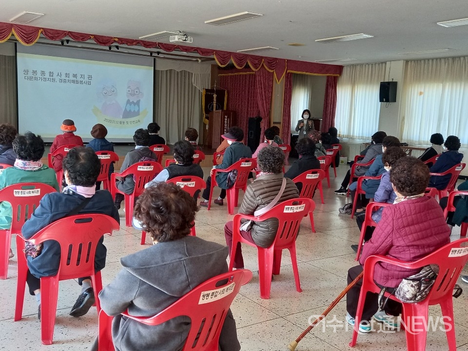쌍봉종합사회복지관(관장 김종진)이 '2020년도 노인사회활동지원사업' 참여자 안전교육을 실시했다.
