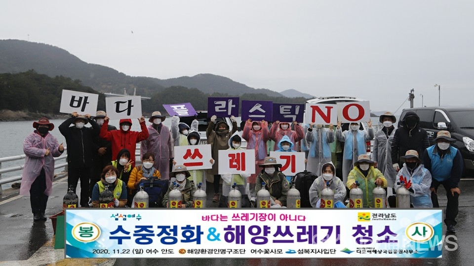 22일 비가내린 가운데 해양환경인명구조단과 여수꽃사모, 지역사회보장협의체, 다도해해상국립공원사무소 회원 40여명은 수중정화와 해수욕장 해양정화 활동에 나섰다. 이들은 최근 지역사회보장협의체와 함께 7월, 10월, 11월 연이어 봉사활동을 이어왔다.