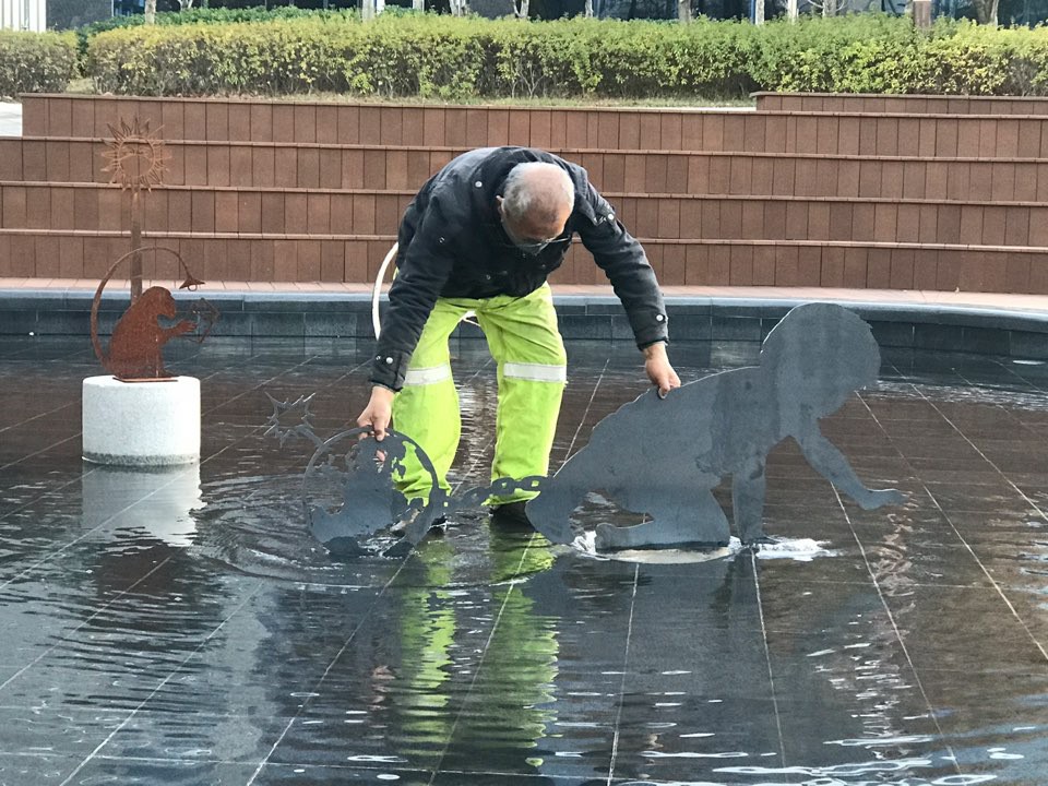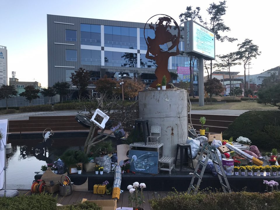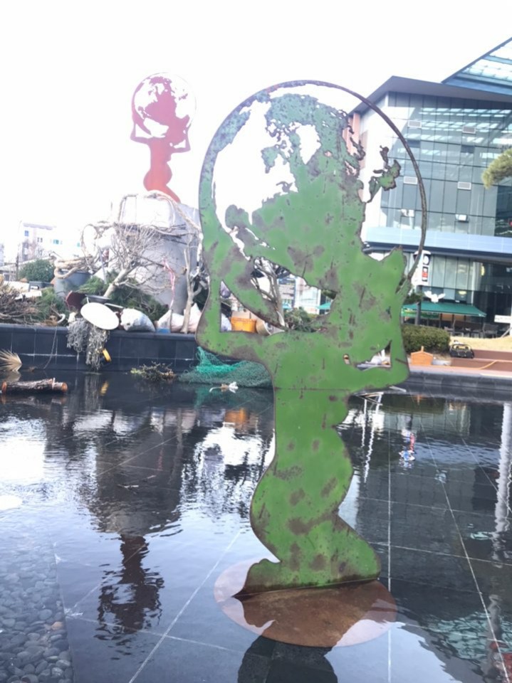'가이아 아틀라스'는 버려진 일회용품더미 위에서 산모가 힘겹게 지구를 들고 있는 모습을 철판을 오려 설치한 작품으로 이는 지구의 신 가이아가 오염된 환경에서 지구를 구하는 희망을 담아 형상화한 작품이다.