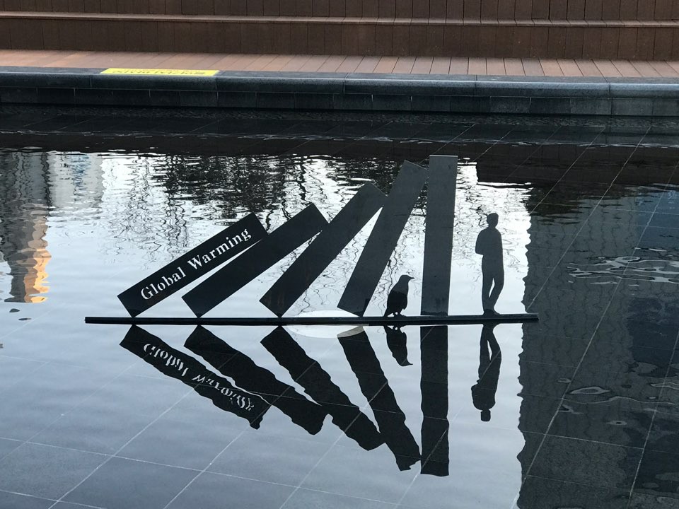 지구온난화로 인해 북극의 얼음이 녹아내려 북극곰과 펭귄이 서식처를 잃어가는 요즘의 상황이 개선되지 않는다면 우리 인간도 설자리가 없어진다는 현상을 나타낸 작품 '도미노'는 우리에게 지구온난화에 대한 경각심을 일깨워주는 작품이다.