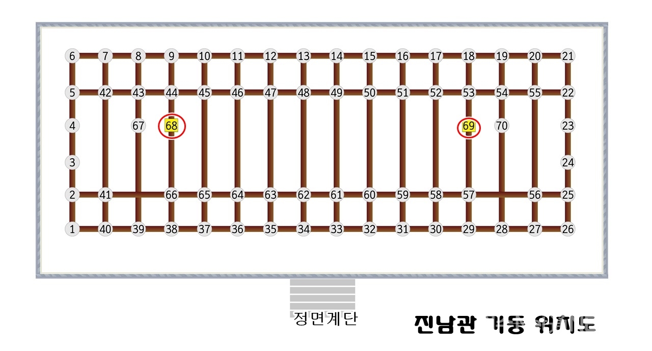 그런데 왜 지금까지 모든 기록에는 진남관 기둥을 68개라고 표기했을까?