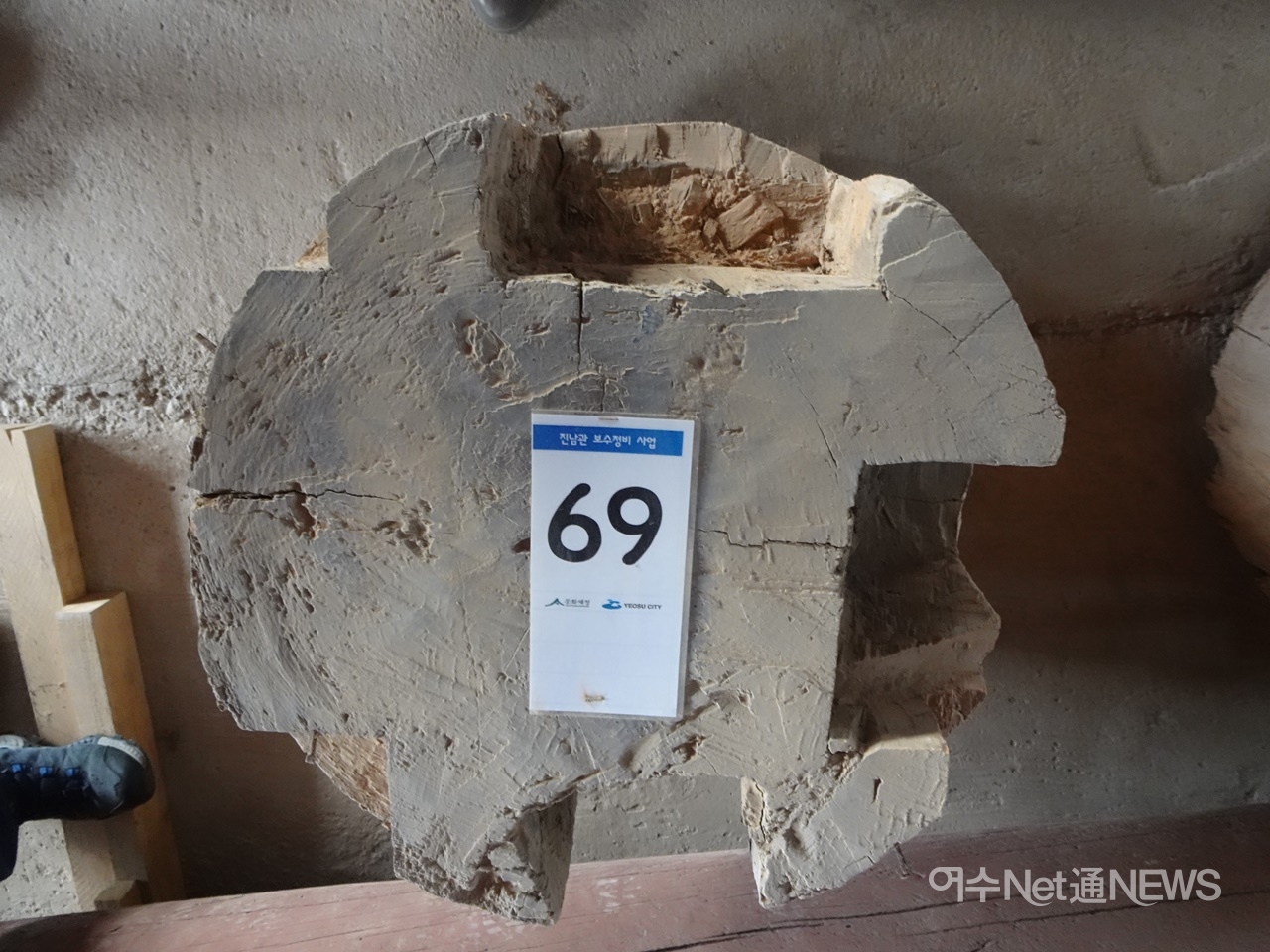 “전통건축물은 설계도면에 기둥 번호를 매기는데요, 복원 설계도에 (진남관 기둥번호는) 70번까지 나와 있습니다. 그리고 새로 확인된 대칭된 곳의 두 군데 기둥은 도면상 68번, 69번입니다. 각 기둥의 초석도 확인되었습니다.