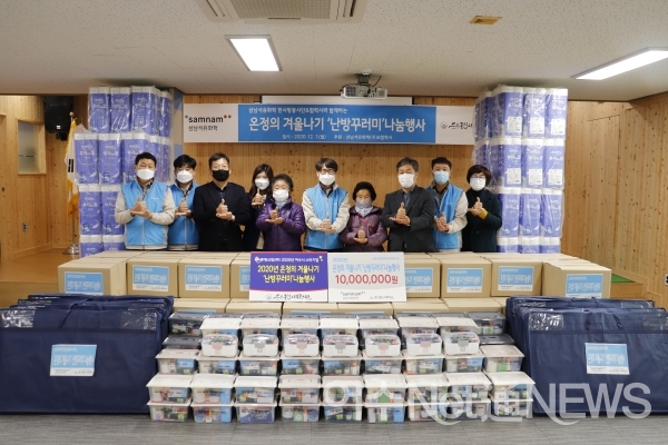이날 행사는 삼남석유화학(주) 한사랑 봉사단과 협력업체가 함께한지 12년째 진행되고 있는 사업으로 여수시에 거주하는 취약계층 120세대에 코로나19관련 긴급구호물품과 난방꾸러미를 전달하였습니다.