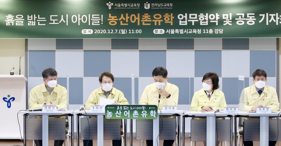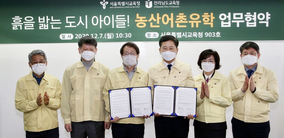 전남도교육청(교육감 장석웅)과 서울특별시교육청(교육감 조희연)은 7일 서울특별시교육청에서 ‘농산어촌유학 운영’을 위한 업무협약을 체결했다.