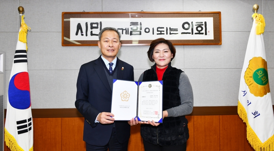박성미 의원은 “지역발전에 조금이나마 기여한다는 마음가짐으로 의정활동을 펼친 결과 이렇게 뜻깊은 상을 수상하게 된 것 같다”며 “새해에도 시민 행복을 위해 더욱더 노력하는 의원이 되겠다”고 소감을 밝혔다.