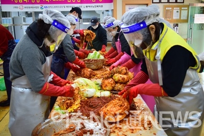 17일 오전 9시 복지관 경로식당에서 일체의 외부 참여자 없이 임직원 20여명만이 참여한 가운데 절임배추 300kg을 김장했다.