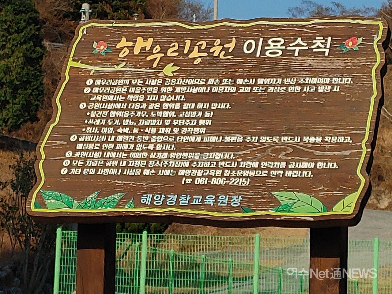 공원을 둘러보았습니다. 해우리공원 쉼터 이용수칙을 보니 이곳은 해양경찰교육원 창조운영팀이 관리한다고 적혀있습니다.