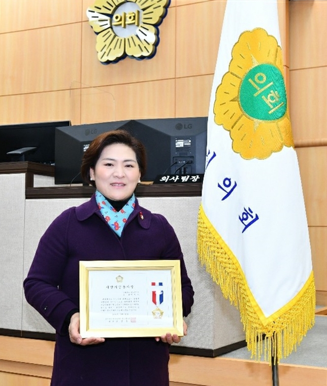 여수시의회 박성미 의원이 31일 전국 시·군·구 협의회(회장 서울 중구의회 조영훈 의장)로부터 지방의정 봉사상을 받았다.