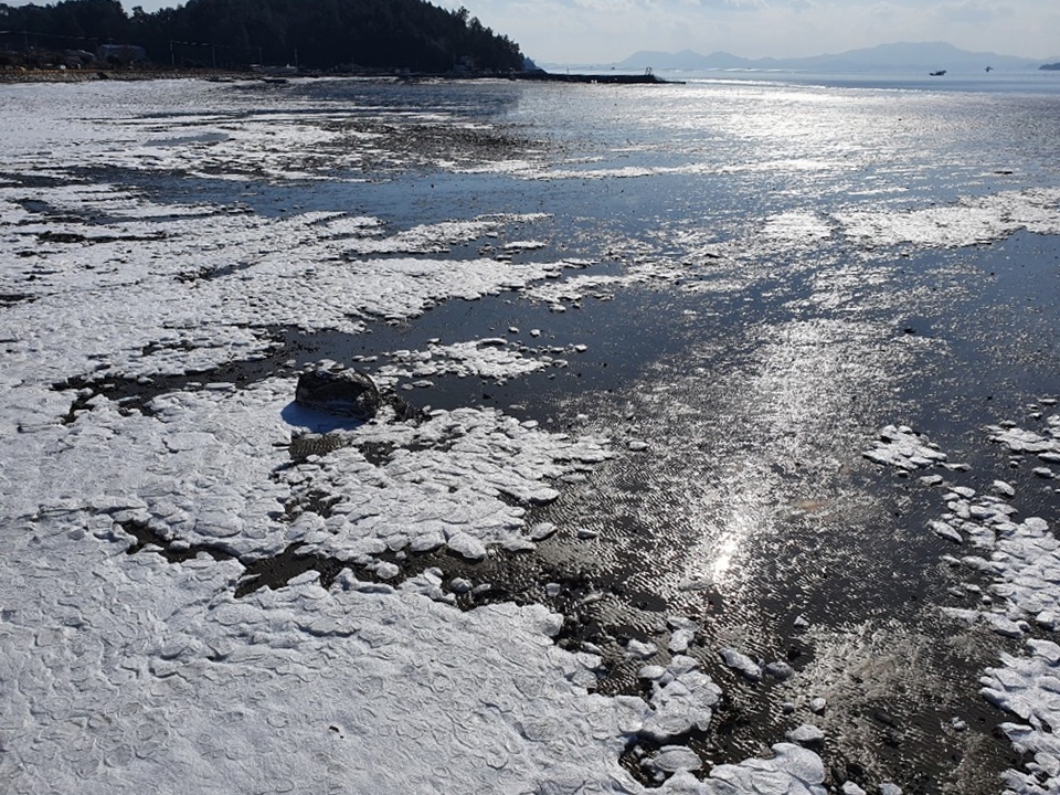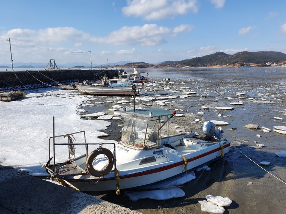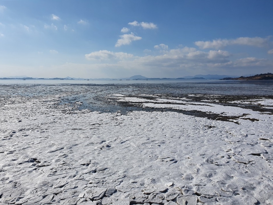 한파 때문에 해변이 얼었고 그 위에 떠오른 햇빛에 반짝여 하얗게 빚나는 풍경은 너무 아름다워 머리가 어지러울 정도였다. 마치 TV에서 보았던 북극 풍경처럼 느껴졌다.