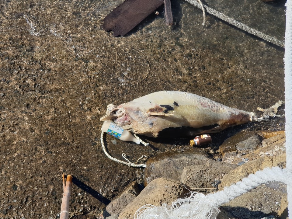 구조단은 사체에 별다른 흔적이 없다는 것을 확인한 후 해경에 신고했다. 상괭이 사체는 지자체가 인수해 폐기할 예정이다,