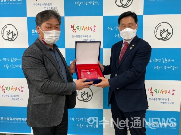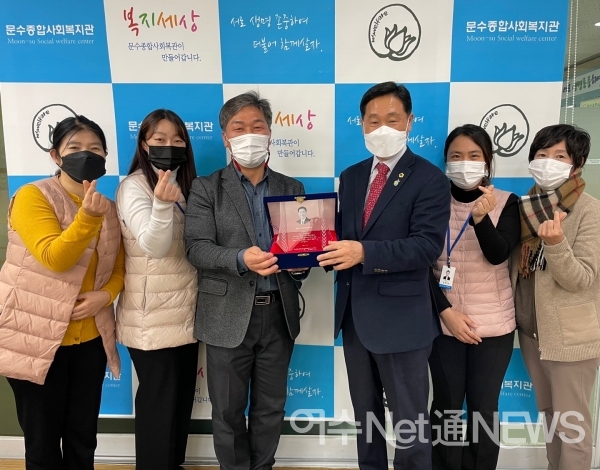 문수종합사회복지관이 27일 강문성 전남도의원의 노고를 치하하며 감사패를 전달하였다.
