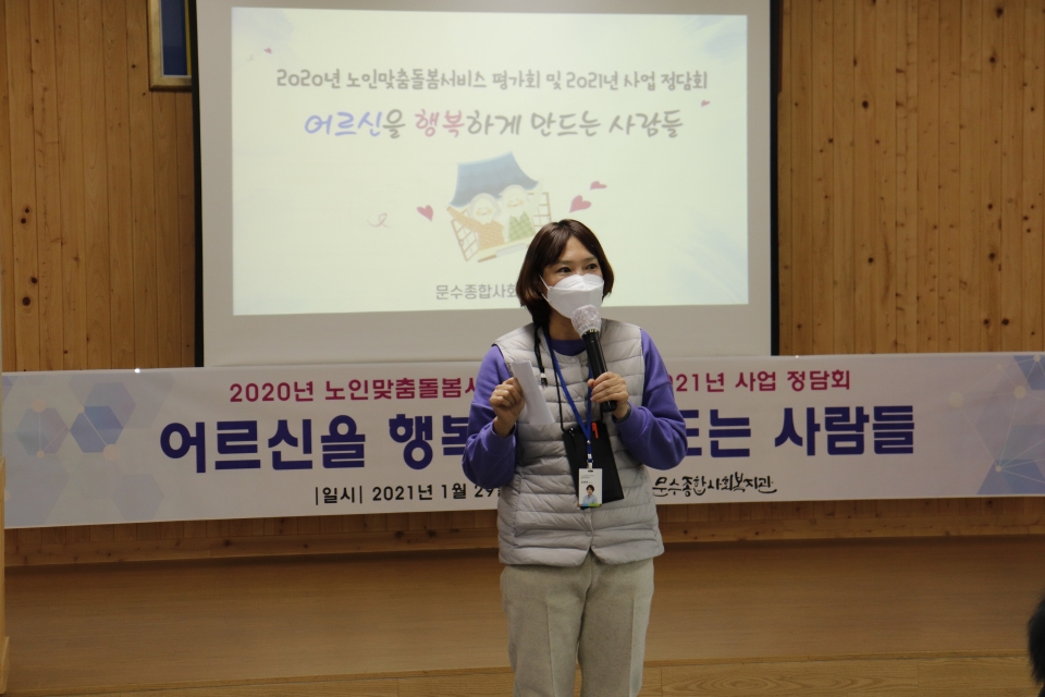 문수종합사회복지관이 노인맞춤돌봄 서비스 종사자를 대상으로 '2020년 노인맞춤돌봄서비스 평가회 및 2021년 사업 정담회'를 개최하였다.